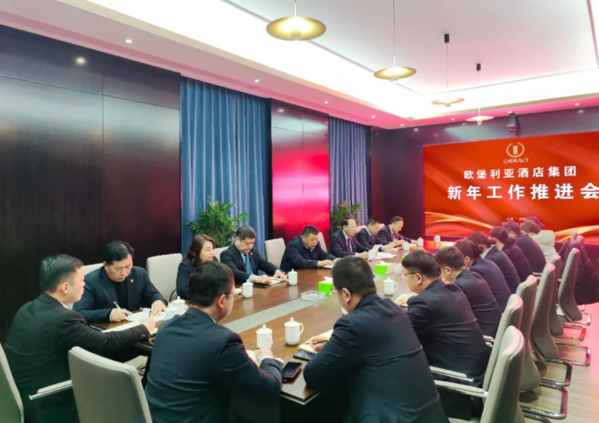 萬物逢春可復蘇,天道酬勤鑄不凡。為認真總結2022年總體工作,務實部署2023年當前工作,咬緊目標任務沖刺“開門紅”,砥礪責任擔當干出“加速度”,迅速擂響開春即開工、開局即奮戰、起步即沖刺的戰鼓,全面推動歐堡利亞酒店事業又好又快發展,2023年2月3日15時,歐堡利亞酒店集團召開了“2023年新年工作推進會”,歐堡利亞集團戴春明董事長、歐堡利亞酒店集團鄧棟總經理及各部門和直屬各酒店部分中高層管理人員20余人參加了此次會議。