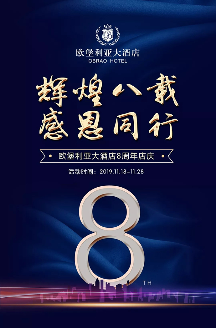 歐堡利亞大酒店即將迎來八周年店慶,在這八年里,我們成長的每一步,都離不開您的支持,酒店憑借著精益求精的服務(wù)品質(zhì)和以客為尊的待客之道,給每一位顧客留下了深刻的印象,同時也得到了社會各界人士的認可。 為感謝新老客戶對我們的支持和厚愛,歐堡利亞大酒店專心為您精心設(shè)立了一系列的周年慶禮遇,感恩您的一路相伴!特惠舒適房 388元/間夜(原價 688元/間夜)【贈送高級大/雙床房一間,自助早餐2份,限購100間】特惠豪華房 518元/間夜(原價 888元/間夜)【贈送高級大/雙床房一間,自助早餐2份,自助晚餐2份】