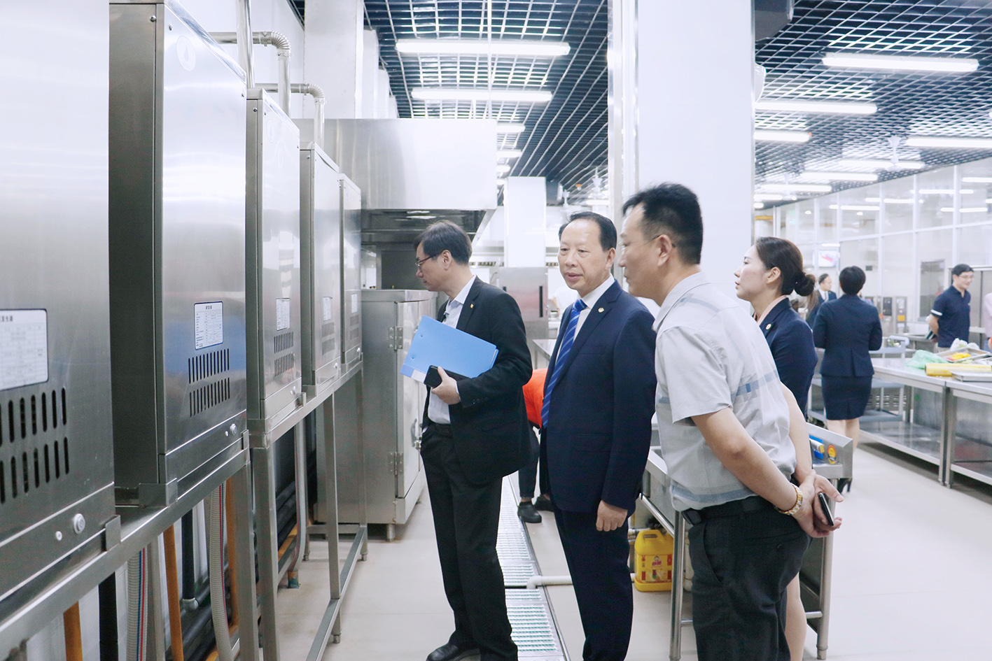 ▲ 市級星評員及相關領導檢查廚房